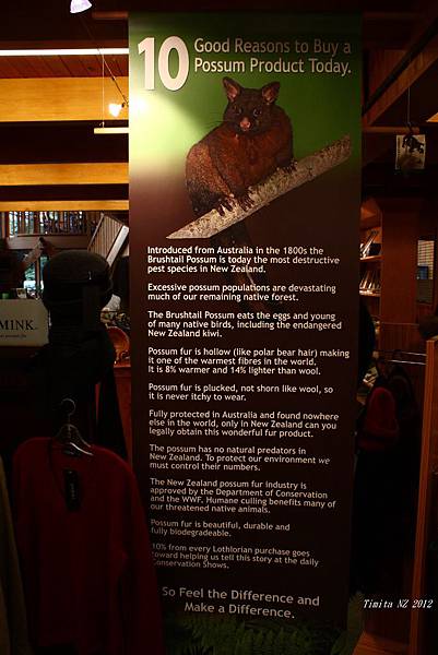 在園區還可以看到鼓勵觀光客用Possum的製品來保護Kiwi鳥的牌子