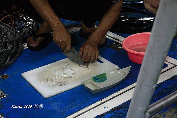 吃完後大家回船邊繼續來釣小管,因為若沒釣到的話等一下就沒有新鮮的小管生魚片吃了><