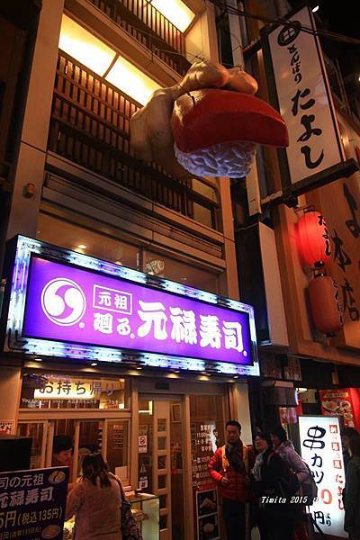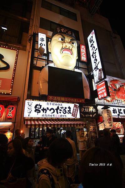 看到一整排的食倒太郎!!!他有名到幾乎是來這裡的觀光客都要跟他拍一張照而且還有許多周邊商品唷!!!人氣不輸大螃蟹和固力果跑跑男唷!!