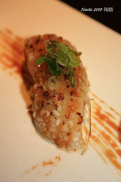 炙燒蝶魚翅,蝶魚翅也是油脂豐富!!!炙燒後油脂溶入醋飯,更是有特殊的香氣,真的好吃!!!