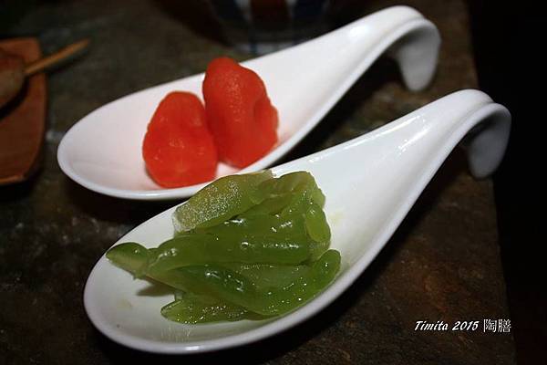 莼菜梅子醋,莼菜這個名字Timita還第一次聽到!!!趕緊來品嘗一下口感 哈哈,QQ滑滑透明膠質,很像果凍又像愛玉,但又更有彈性的口感!!!重點是天然健康的!!!歐依系啦!!!。想知道什麼是莼菜請自點連結看看吧 ^^~