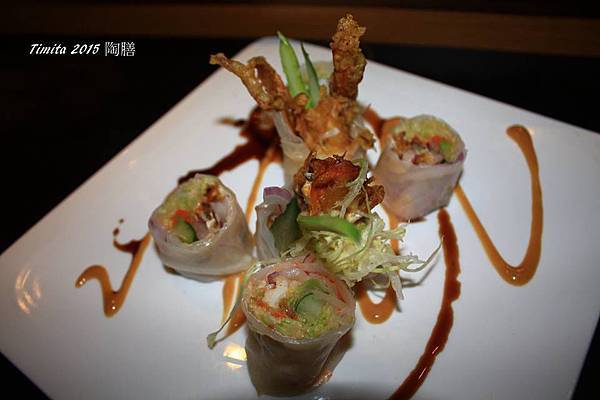 無菜單料理之軟殼蟹蔬菜捲,軟殼蟹酥酥脆脆搭配蔬菜,捲皮QQ的,整體吃起來清爽不油膩!!!好吃!!!