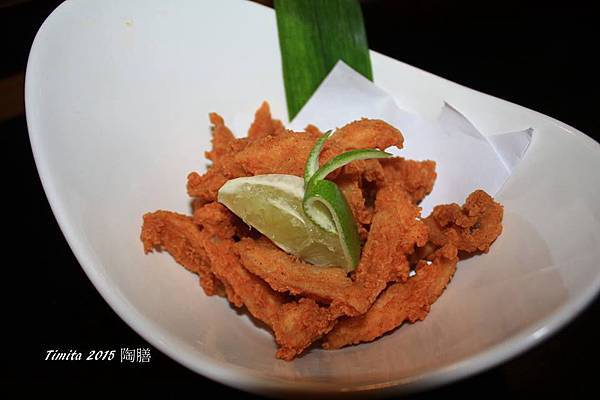 酥炸雞軟骨。滴上檸檬汁又酥又脆真好吃~