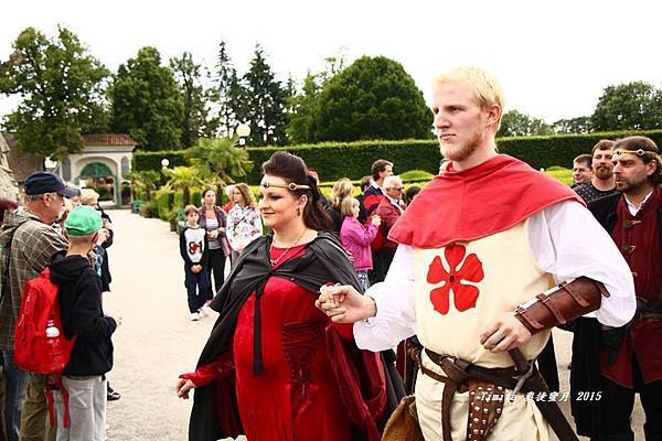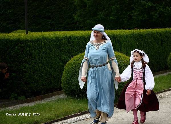 走在路上可以看到許多穿著中古世紀服裝的民眾在街上,感覺好像時光倒流,回到歐洲中古世紀一樣