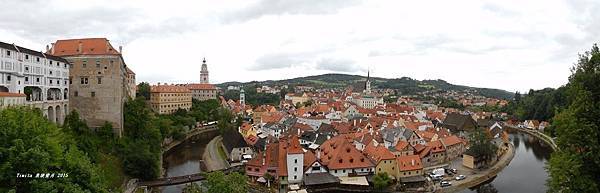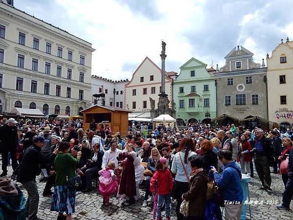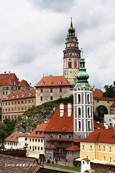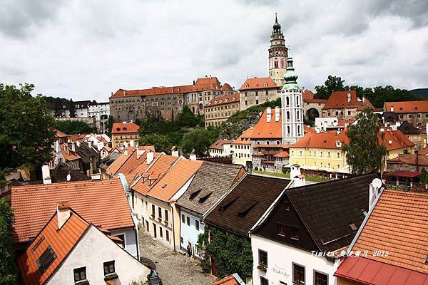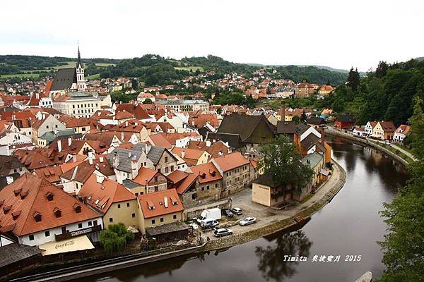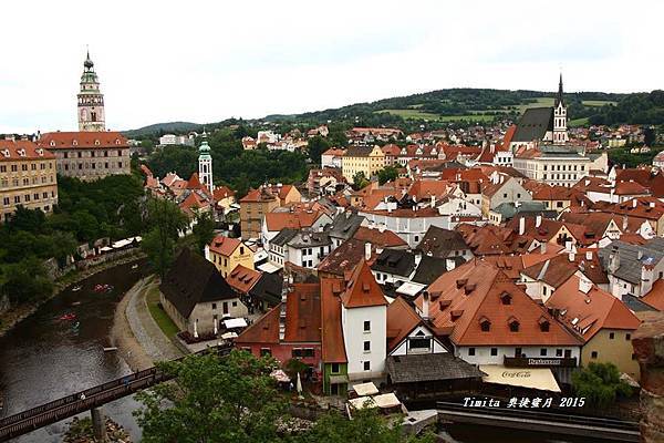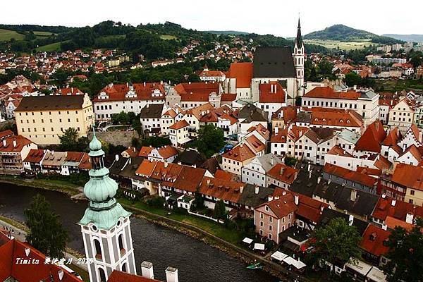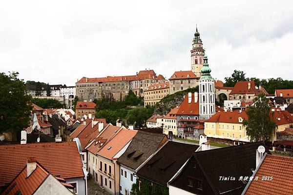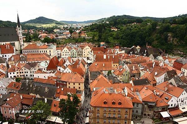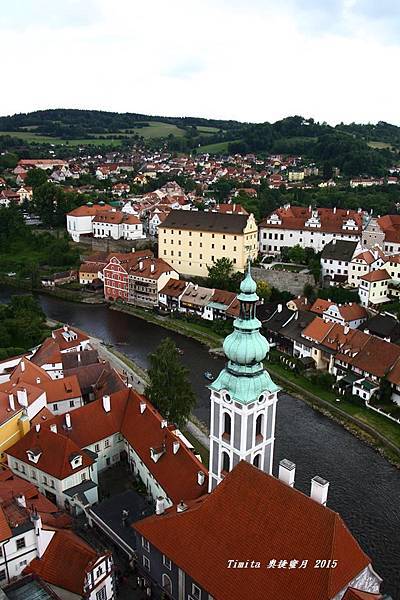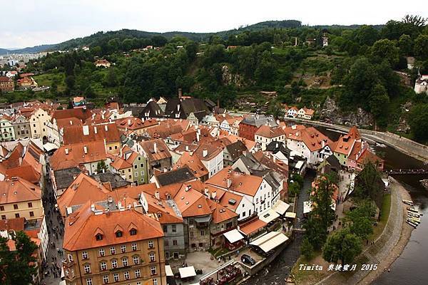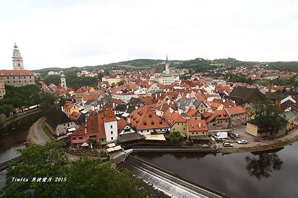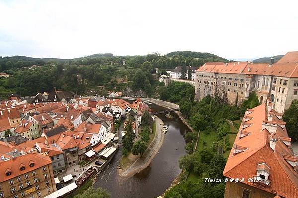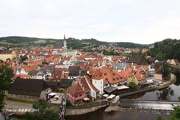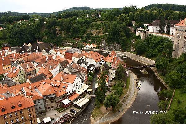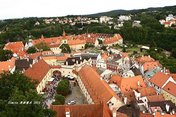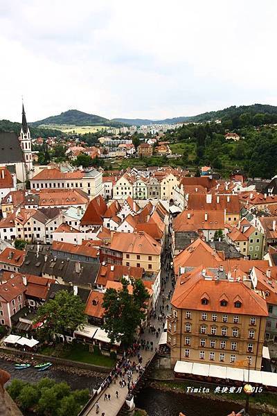 我們一路跟著遊行隊伍往CK小鎮的中心走,城堡附近也有個觀景台,從這裡看整個小鎮也很美!!