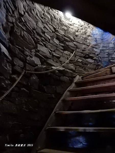 高塔裡的樓梯非常的窄又陡,要扶好旁邊的繩子小心的走