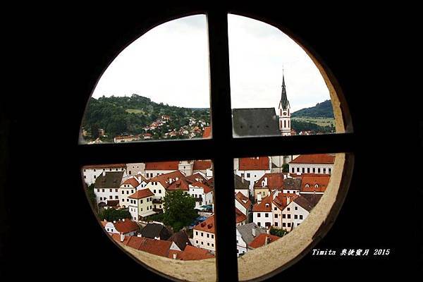 從高塔旁的窗戶看整個小鎮