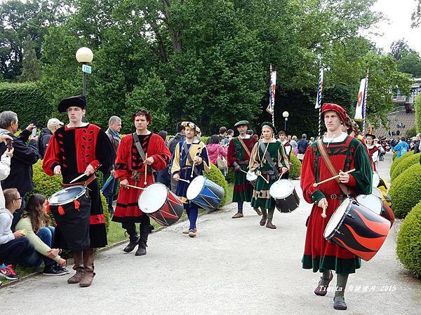 沒多久遊行要準備開始囉!!!會看到許多穿著中古世紀貴族,士兵,平民...等等服裝的人,感覺就像是中古世紀服裝秀一樣!!