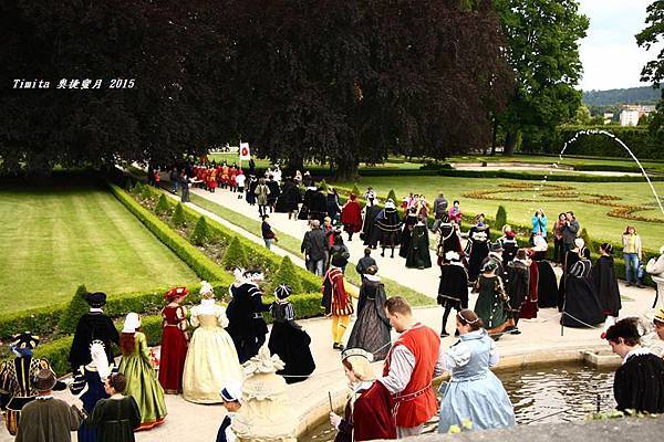 今天剛好是五瓣玫瑰花節的最後一天,在下午的時候會有個遊行,遊行隊伍一路從城堡最上面的花園開始走到Ruze飯店附近