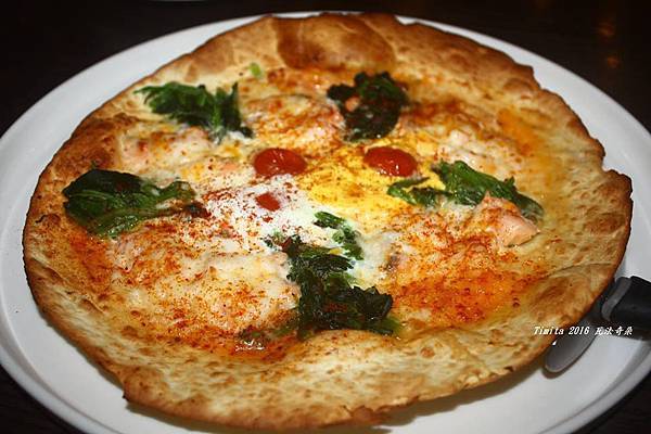 是薄皮的比薩,Timita個人比較喜歡薄皮的,吃起來不會感覺都是在吃皮的感覺,口味還蠻特別的,好吃唷!!