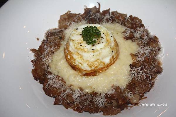 很特別的口感,中間的蛋可以選擇半熟或全熟,起司味道非常濃郁搭配牛胸肉和蛋,真的超歐依細的!!