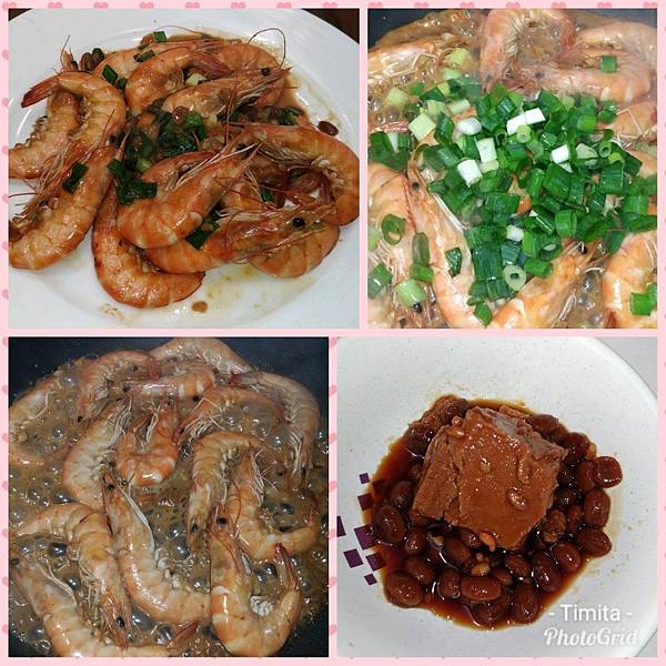 炒到蝦子呈現鮮紅色時,放入青蔥爆一下。