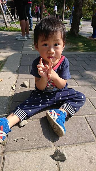 小小豬在隊伍旁邊玩起地上的石頭,哈哈!