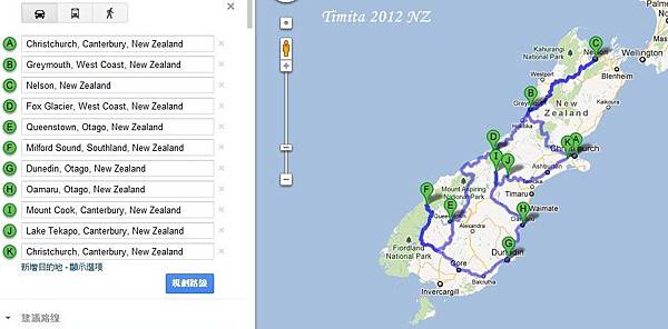 以上是我們環南島的路線圖 (我們是在2012年2月13日出發的 算是紐西蘭的夏天)