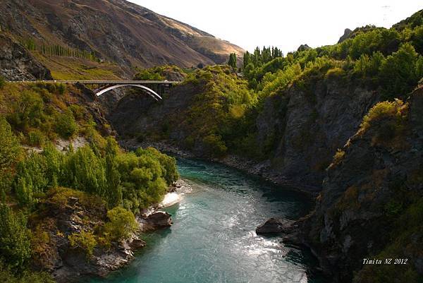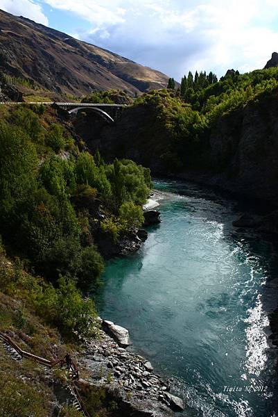 從Kawarau Bridge俯瞰下去溪流非常的清澈再加上它是高空彈跳的發源地