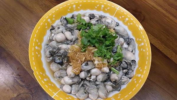 2.蚵仔洗乾淨,濾乾水份,撒一點地瓜粉在蚵仔上